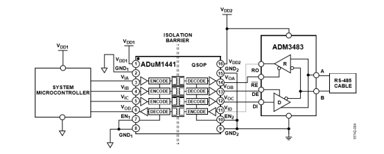 RS-485系統(tǒng)通常用于連接多個(gè)系統(tǒng),電纜鋪設(shè)距離很長(zhǎng)(有時(shí)超過4000米),因此總線和所連接的各系統(tǒng)之間的隔離非常關(guān)鍵。越來越普及的數(shù)字隔離技術(shù)在RS-485電纜網(wǎng)絡(luò)和與之連接的系統(tǒng)之間提供了重要的隔離,并防止過壓瞬變,同時(shí)避免在RS-485網(wǎng)絡(luò)中形成接地環(huán)路。在工業(yè)應(yīng)用中,如今對(duì)隔離和數(shù)據(jù)收發(fā)存在兩大需求:更高的數(shù)據(jù)速率和更低功耗的工作模式。ADI公司的iCoupler®數(shù)字隔離器和RS-485收發(fā)器產(chǎn)品系列可以很好地滿足這兩大需求。